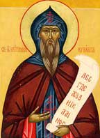 Живео је у време светих Антонија и Теодосија. Дошао у манастир као богати трговац. Остави све и раздели сиротињи, а он се преда најстрожем подвигу у зазиданој ћелији. Сам свети Антоније кроз оканце додавао му по једну просфору, и то сваки други дан. Прелештен од демона, који му се јаве у светлости ангелској, он се поклони њима, потом и самом сатани, верујући да је то Христос. Од тога се разболи, и одлежи две године, после чега оздрави и постане обазривији и искуснији подвижник, због чега му се пред крај даде благодат обилна. Упокојио се 1090. године.