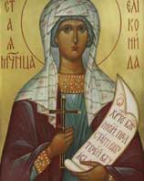 посечења уздиже Елконида руке своје у висину и мољаше се Богу, да је Бог прими и придружи овцама Својим у огради небеској. Када сврши молитву, чу се глас с неба: „Приђи, крећи, готов је за тебе и венац и престо!“ Најзад би посечена мачем, и прими венац славе од Господа, коме се из љубави и жртвова као невино и чисто јагње.