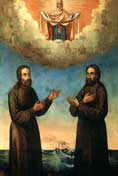 Монаси Соловецког манастира. Утопили се и били избачени на обалу 1651. године. Над њиховим гробом показало се неко знамење, и због тога црква сазидана. Доцније ту је постројен манастир Петромински. Једном цар Петар Велики, спасавши се од буре, проведе ту три дана и направи крст и пободе на обали.