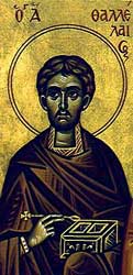 Мученик Твој Господе, Талалеј, у страдању своме је примио непропадљиви венац, од Тебе Бога нашега, јер имајући помоћ Твоју мучитеље победи, а разори и немоћну дрскост демона: Његовим молитвама спаси душе наше.