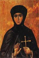 Рођена по молитви њене матере свете мученице Атанасије, која јој се јави и рече, да ће родити. Родитељи је посвете Богу, и рано је даду у женски манастир. По смрти родитеља она од огромног имања поручи у златара три иконе: Спаситеља, Богородице и свете Анастасије, а остало све раздаде сиромасима. Пострада у време опакога цара Лава Исаврјанина, иконогонитеља, и прими двогуби венац: девичански и мученички, 730. године.