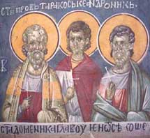 Тарах беше родом из Клавдиопоља у Сирији; Пров из Сиде Памфилијске, а Андроник — син знаменитог грађанина Ефеског. Мучени сва три заједно од антипата Нумерија Максима у време цара Диоклецијана. Тараху беше 65 година у време мучења. Када га антипат три пута упита за име, он сва три пута одговори: хришћанин. Најпре их тукоше штаповима, па их крваве и рањаве бацише у тамницу. По том их поново изведоше на истјазање. Када антипат саветоваше Прова да се одрече Христа обећавајући му почасти од цара и своје пријатељство, одговори Пров свети: „нити цареве почасти хоћу, нити твоје пријатељство желим“. А када прећаше св. Андронику још већим телесним мукама, одговори млади мученик Христов: „тело моје пред тобом је, чини што хоћеш“. После дуготрајних мучења по разним местима ова три света мученика беху бачени у позоришту пред зверове. Пре њих беху неки други осуђеници у истом позоришту растргнути од зверова. Но зверови не хтеше шкодити светитељима, него се и медвед и лавица љута умиљаваху око њих. Видећи то многи повероваше у Христа Бога и викаху на антипата. Бесан од љутине, и љући од зверова, антипат нареди војницима, те уђоше и мачевима исекоше Христове војнике на комаде. Тела им осташе помешана са мртвим телима осталих осуђеника. Три хришћанина: Макарије, Феликс и Верије, који присуствоваху убиству св. мученика, дођоше те ноћи да узму тела њихова. Но како тела беху помешана, а ноћ беше врло тамна, они, у недоумици како да распознају тела мученичка, помолише се Богу, и на једанпут појавише се три свеће над телима светитељским. И тако они их узеше и чесно сахранише.