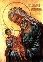 У време цара мисирског Птоломеја Фила-делфа изабран би и овај Симеон као један од знамените Седамдесеторице, којима би поверен посао превођења Библије са јеврејског на грчки језик. Симеон рађаше свој посао савесно, но када превођаше пророка Исаију, па дође до оног пророчанства: ево дјева ће затрудњети и родиће сина, он се збуни, па узе нож да избрише реч дјева и замени је са речју „млада жена“, и да тако и преведе на грчки. Али у том тренутку јави се Симеону ангел Божји и задржа га од његове намере, објаснивши му да је пророчанство истинито, и да је тачно записано. А да је истинито и тачно, рече му још весник Божји, увериће се и он сам лично, јер по Божјој вољи неће умрети док не види Месију рођенога од девојке. Обрадова се праведни Симеон таквоме гласу с неба, остави пророчанство неизмењено, и захвали Богу што га удостојава да доживи и види Обећанога. Када Младенац Исус би донесен Дјевом Маријом у храм јерусалимски, Дух Божји то јави Симеону, који беше веома стар и бео као лабуд. Симеон брзо оде у храм и у храму познаде и Дјеву и Младенца по светлости што зрачаше око глава њихових као ореол. Радостан старац узе Христа на руке своје и замоли Бога: „Сад отпушташ у миру слугу својега, Господе, по ријечи својој; јер видјеше очи моје спасење Твоје“ (Лк 2, 29-30). Ту се десила и Ана пророчица, кћи Фануилова, која и сама познаде Месију и објави Га народу. Ани је тада било осамдесет четири године. Ускоро по том престави се свети Симеон. Овај праведни старац Симеон сматра се заштитником мале деце.