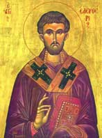 Био си наследник Апостола престолом и заједничар духом (природом), богонадахнуто дело си нашао у виђењу духовног узрастања: Због тога си уздизао реч истине и ради вере си до крви пострадао, свештеномучениче Елевтерије: Моли Христа Бога да спасе душе наше.