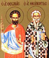 Када Диоклецијан објави гоњење хришћана, епископ никомидијски Теопемт беше први који пострада за Христа. Он беше изведен пред цара, и цар му запрети смртном казном, ако се не одрече Христа. На ту претњу храбри епископ одговори цару: „Стоји написано: не бојте се оних који убијају тело, а душу не могу убити. Ти, царе, имаш власт кад мојим телом, чини с њим што ти драго”. Би много бијен, глађу мучен и истјазаван на разне начине. Најзад цар дозва неког мађионичара, Теону, да Божјем човеку некако мађијама доскочи. Теона раствори у води најјачи отров и даде Теопемту да испије. Теопемт прекрсти чашу и испи отров. Видев Теона, да његов отров ништа не нашкоди Теопемту, он се окрете к цару и узвикну: „И ја сам хришћанин, и клањам се Распетоме”. Обојица бише на смрт осуђени: Теопемта мачем посекоше, а Теону жива у земљу затрпаше, 298 године. Чесно пострадаше и грађани Царства Христовога постадоше.
